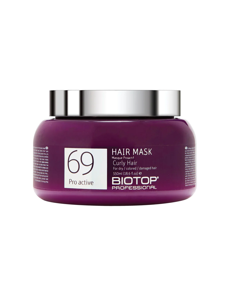 Dispense a dollop of BIOTOP PROFESSIONAL 69 Pro Active Hair Mask into hands. Distribute evenly throughout the hair from mid-section to the tips. Massage gently into hair. Leave in for 2-3 minutes and rinse.