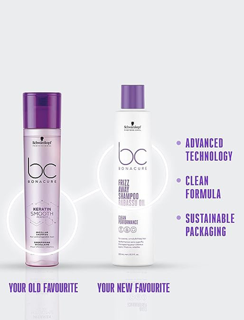 Follow up with the Schwarzkopf BC Keratin Smooth Micellar Conditioner for smooth, damage-free, soft hair every day!