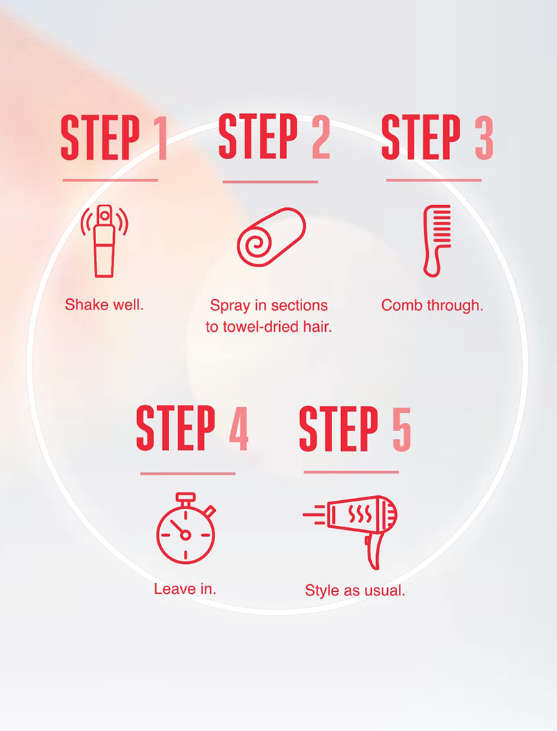 Spray the conditioner evenly over towel dried hair. The spray does not have to be rinsed out.